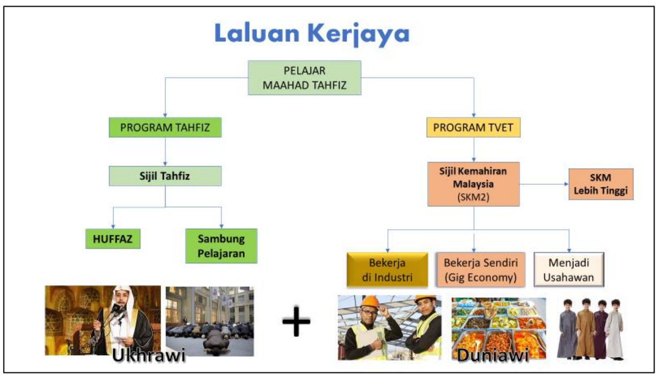 - Di samping menjadi Huffaz yang berjaya dalam aspek ukhrawi, mereka juga berpeluang untuk membina masa depan yang lebih cerah, sekiranya program tahfiz digabungjalinkan dengan program TVET.